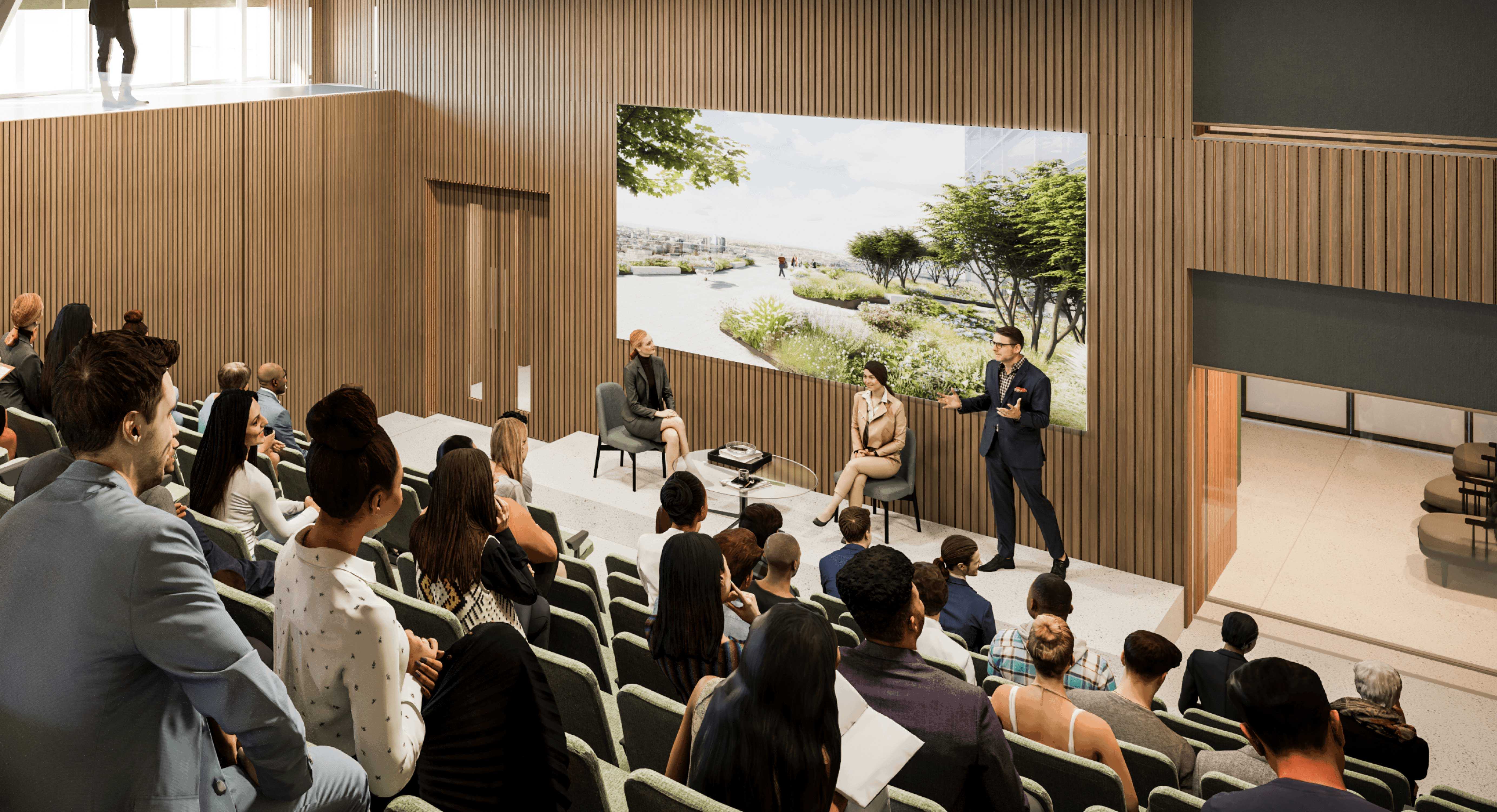 Positive working is continuing to learn and grow. The Think Tank is a 200-seat auditorium with meeting rooms and breakout space for talks, screenings and other events to help businesses exchange ideas and boost their profiles. The seating can be retracted to create a flexible space which can be used from anything from yoga classes to private dining and events.